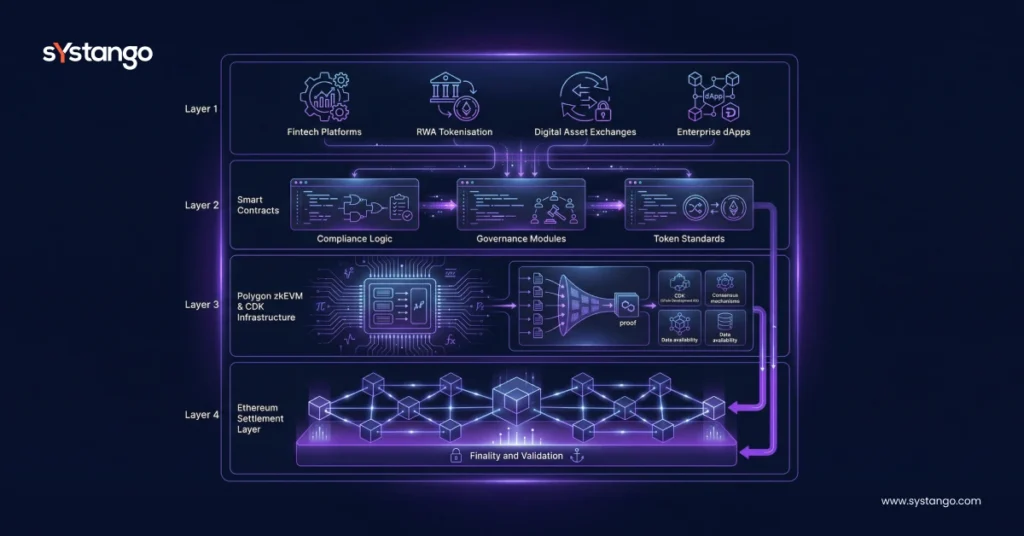 Through enterprise blockchain on Polygon, organisations achieve predictable transaction economics while maintaining Ethereum-level security. For regulated fintech and RWA tokenisation, Polygon’s zk architecture offers a balanced trade-off between decentralisation and operational efficiency.
